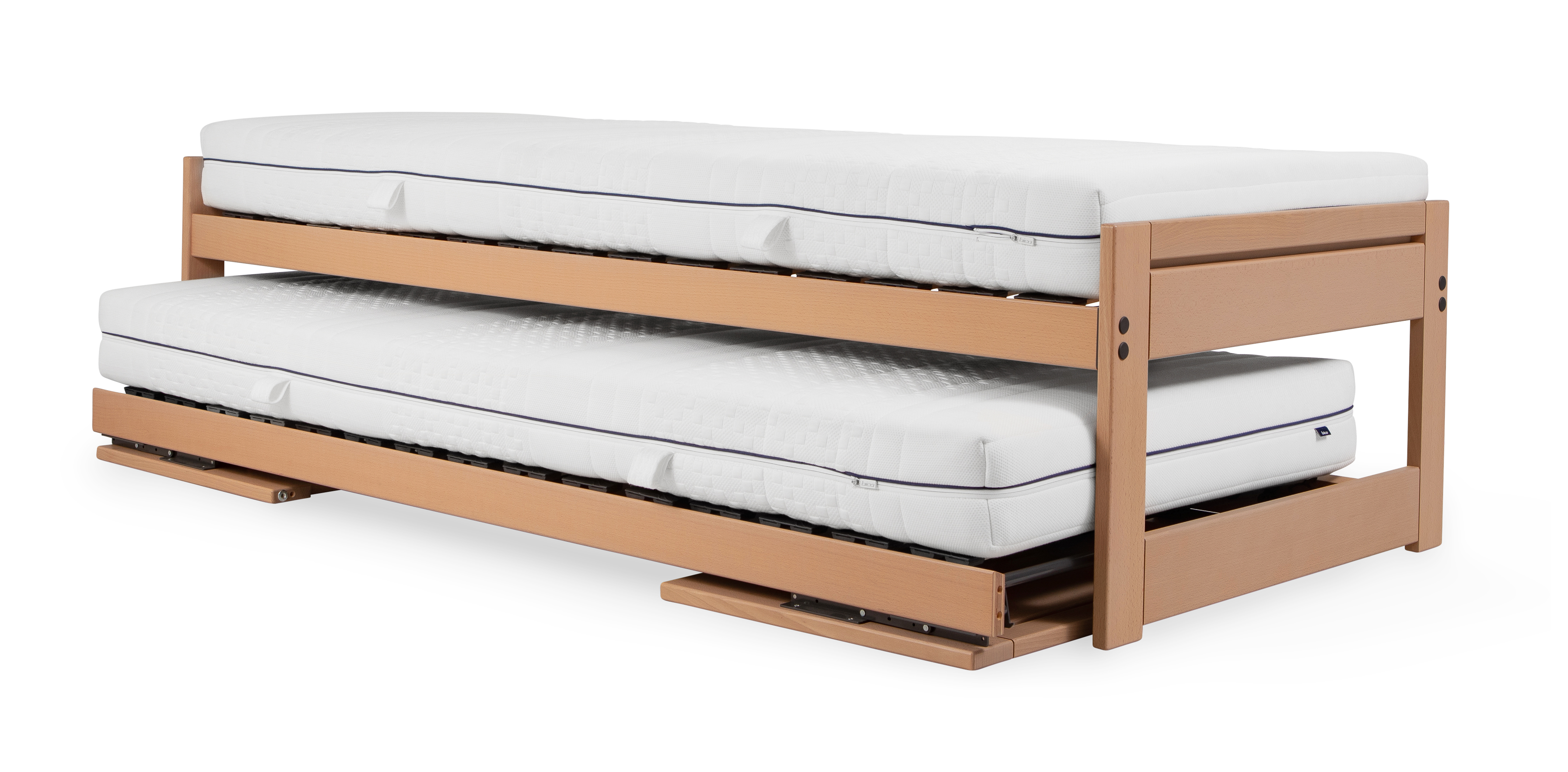 Kanten gerundet mit mehrfach verleimten Federleisten der Swing-flex® Technologie. Verstellbare Kopfteile für Ihren optimalen Komfort. Im Handumdrehen und mühelos ist das untere Bett hervorgezogen und aufgestellt.