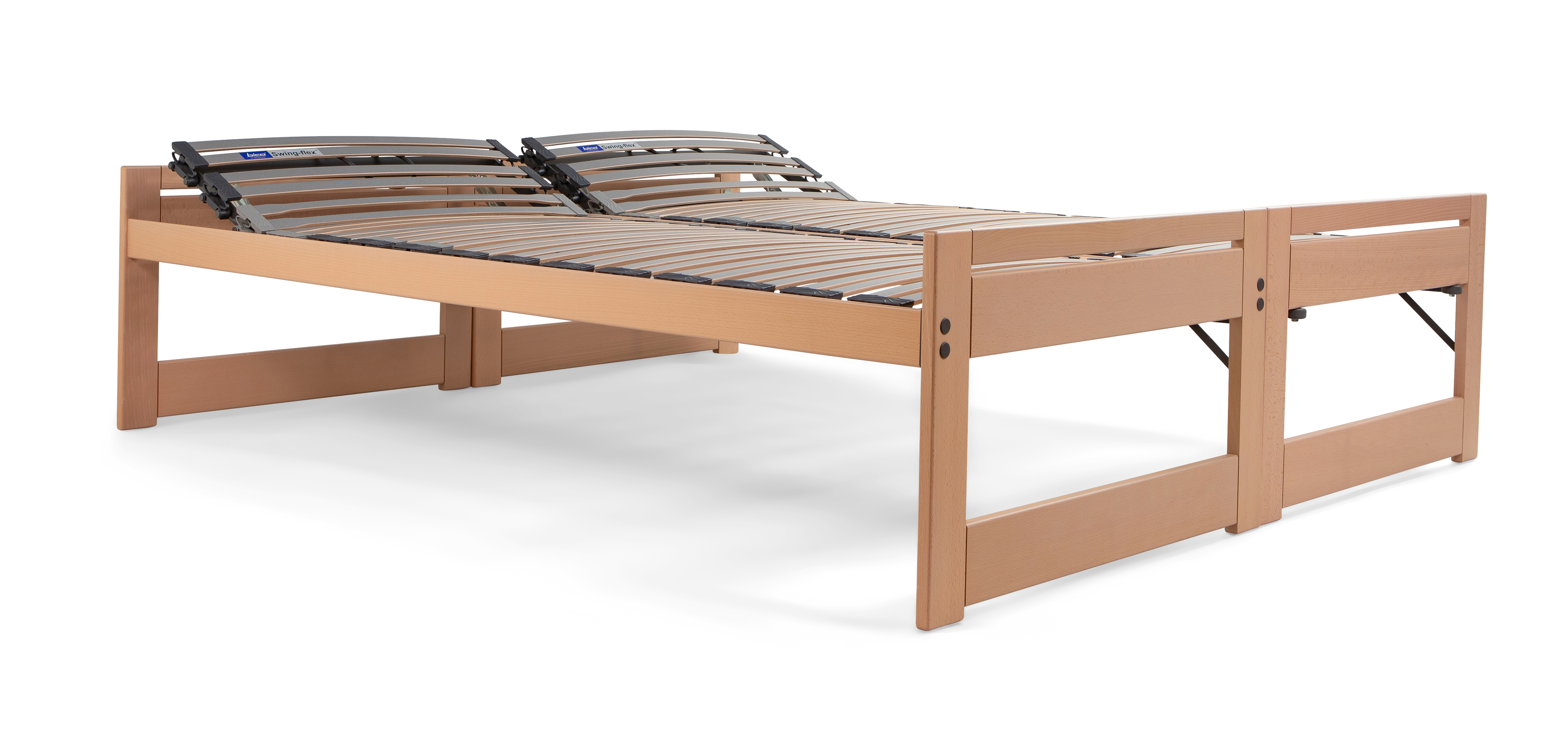 Die praktische, in Buche gebeizte Doppelbettcouch mit besonders stabiler Bauweise.