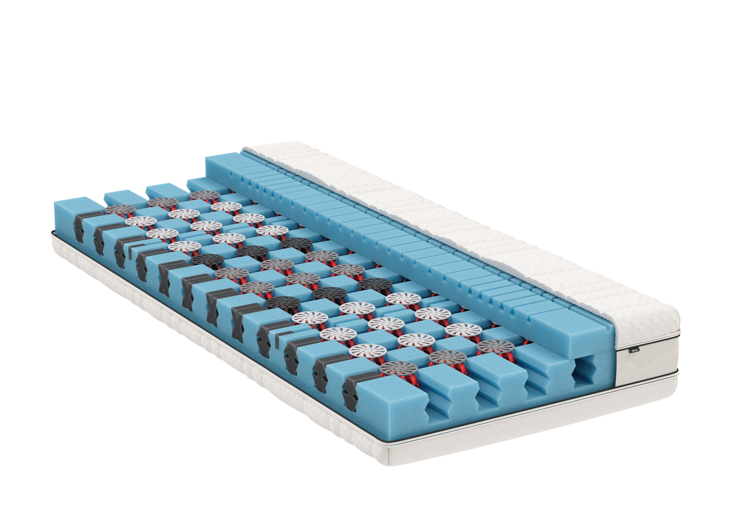 Kern mit Triple-Body-Support(TBS)-Federelementen über alle Körperzonen. Das dreidimensionale Belüftungssystem im Zusammenspiel mit dem strapazierfähigen BluePore-Komfortschaum sorgt für Ihr perfektes Bettklima und eine ausgewogene Lagerung des Körpers.