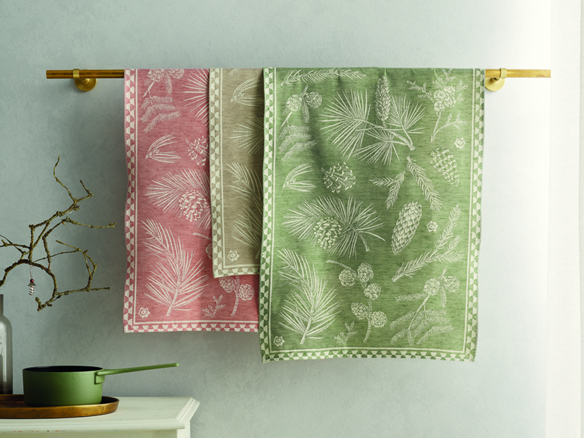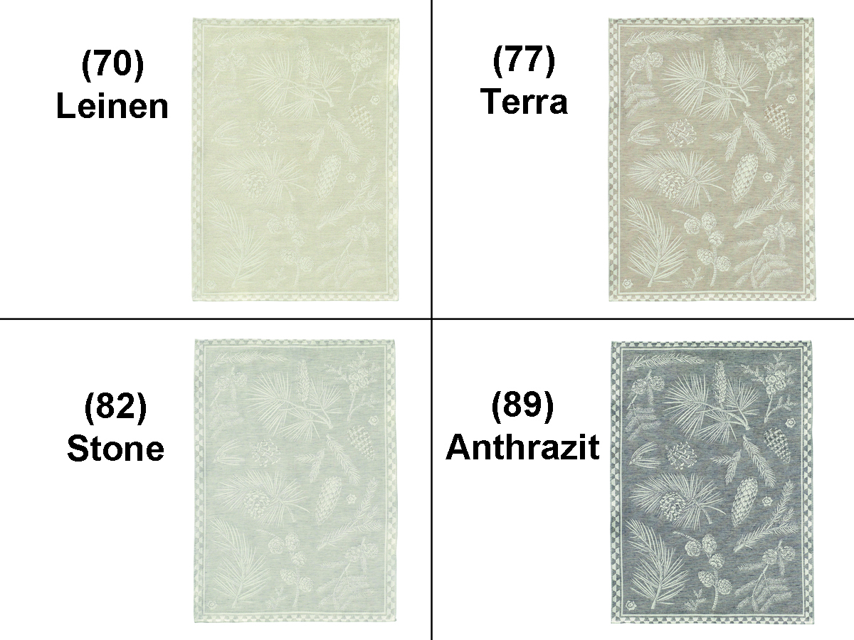 Ein edles Küchentuch, nicht nur für Botaniker. Auch wenn die Detailtreue der dargestellten Gehölzzapfen - ob von Tanne, Kiefer, Douglasie oder einer anderen heimischen Nadelbaumart - es vermuten ließe.