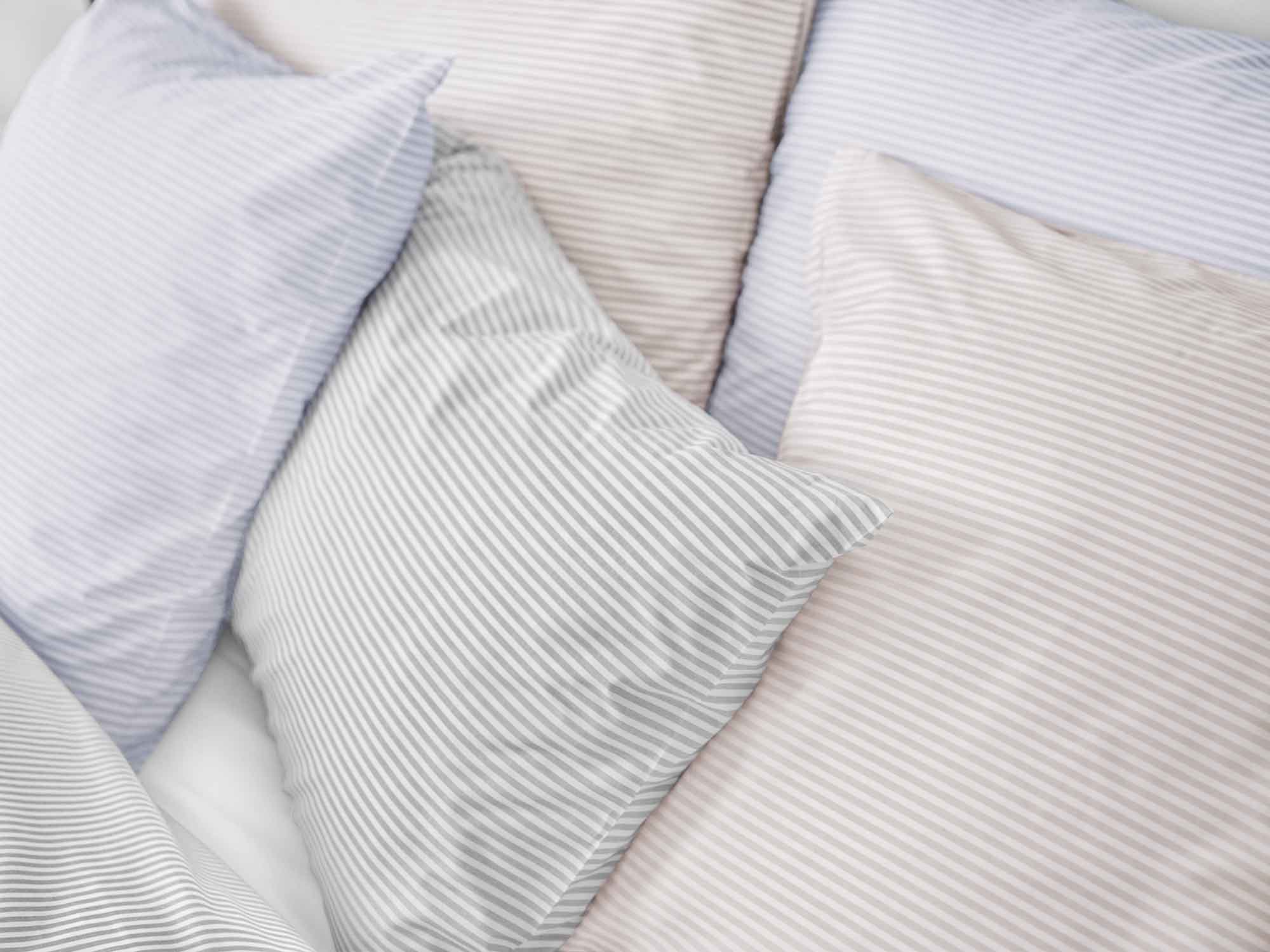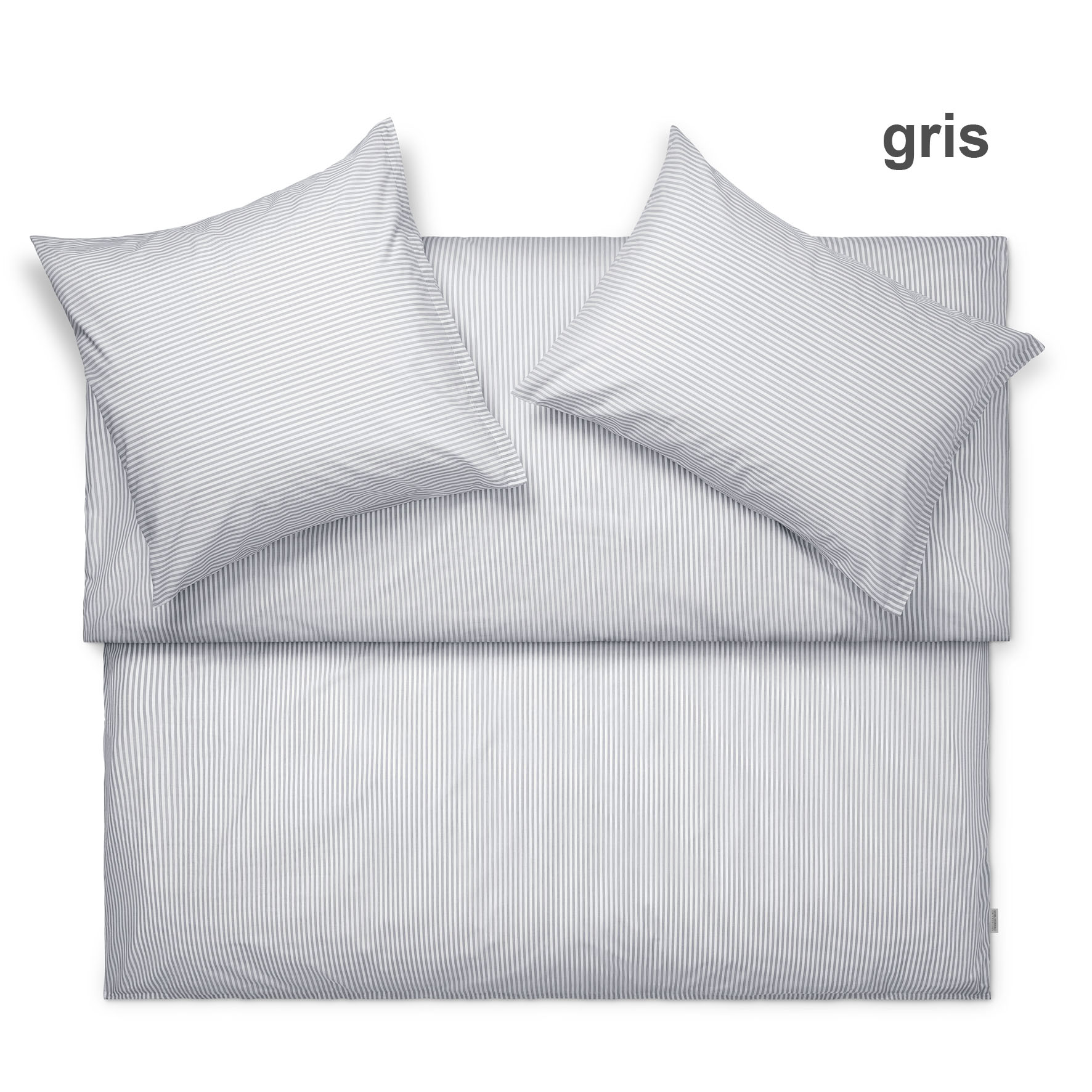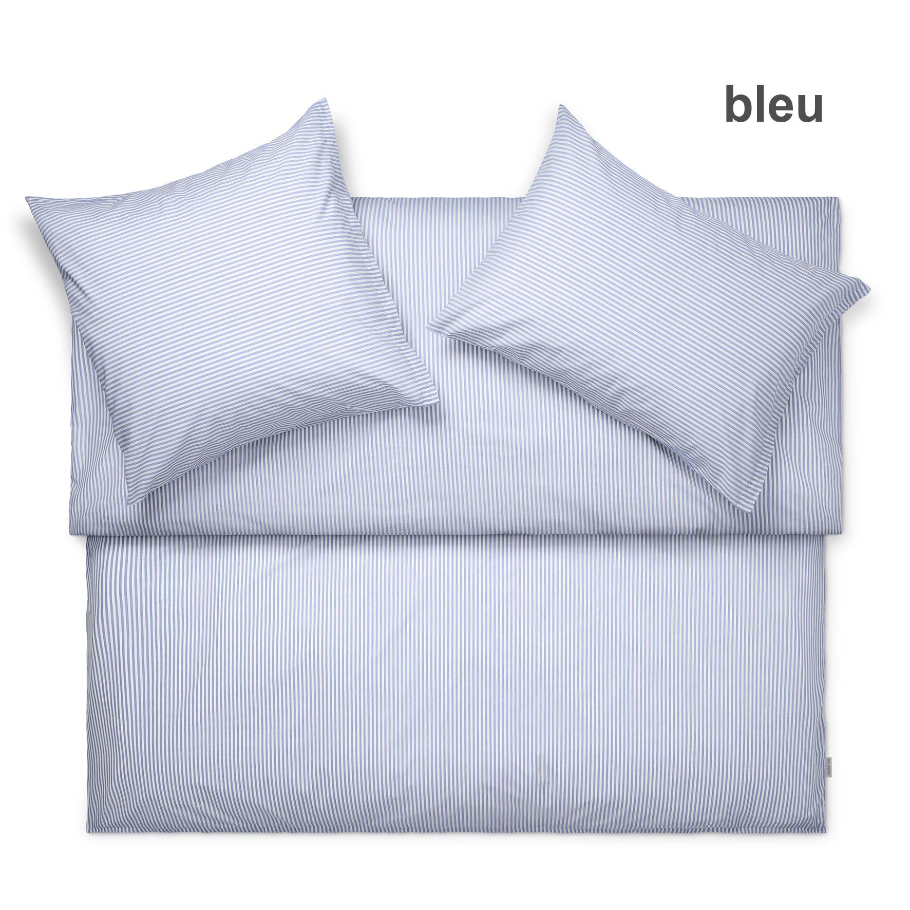 Das feine Fil-à-Fil Gewebe BARI zeigt in den Farben beige, gris und bleu eine dezent melierte Webstruktur. Das Bettwäsche-Design entfaltet mit den zarten Blockstreifen eine frische, elegante und maritime Leichtigkeit in Popeline.